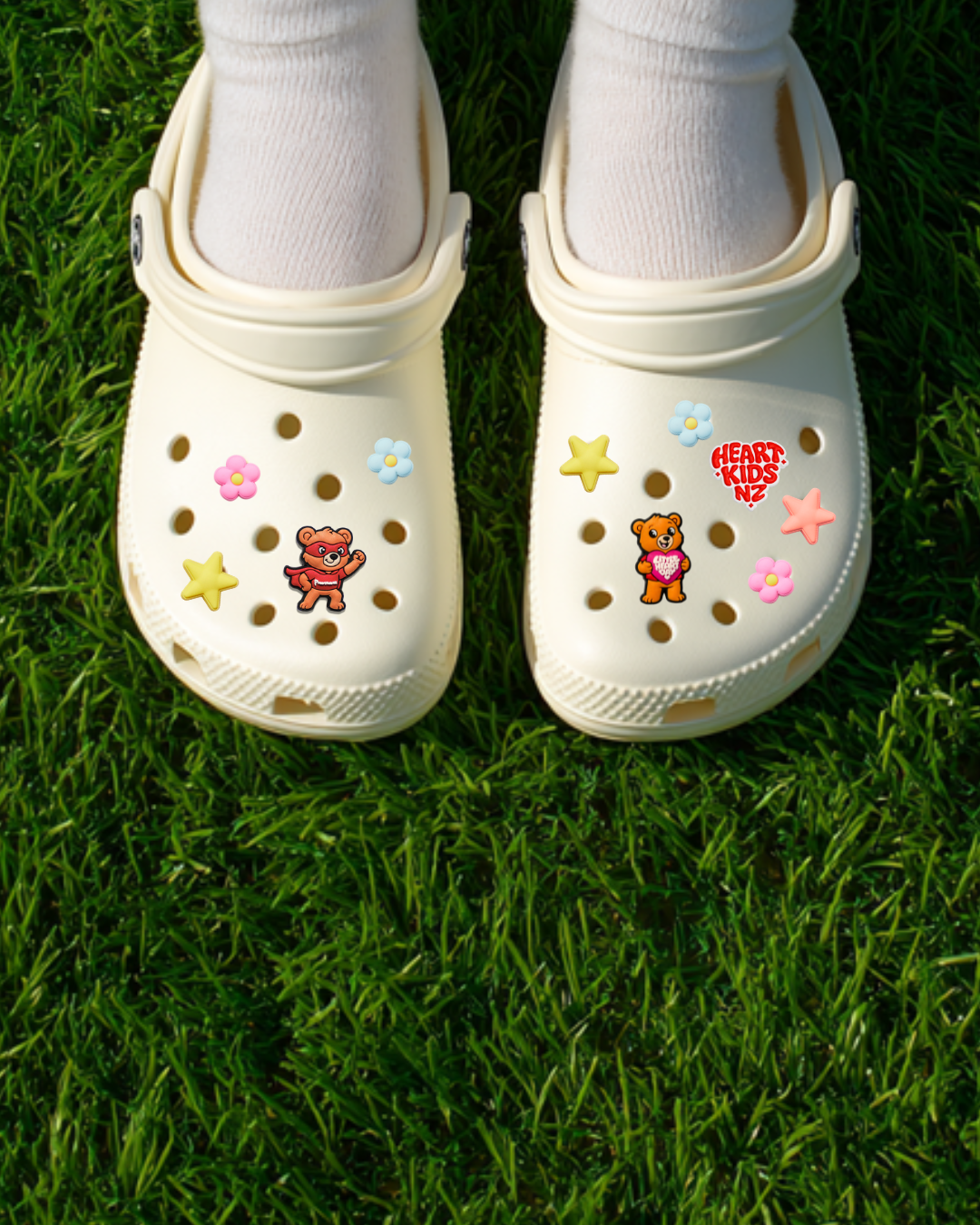 Add a little heart and hero power to your shoes with our newest Heart Kids NZ shoe charm designs – perfect for showing support, spreading kindness, and celebrating Little Heart Day.